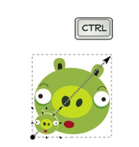 Arányos méretezés : Ha nem célunk, hogy az arányérzékeinket próbára tegyük, kontroll alatt is tarthatjuk ezt a műveletet! Használjuk a CTRL gombot, és bármelyik méretező fogantyúval arányosan tudjuk nagyítani Malackát! (Kisantal, 2014).